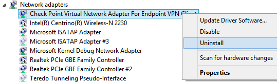 Right click on EVERY single one network adapter and then click Uninstall